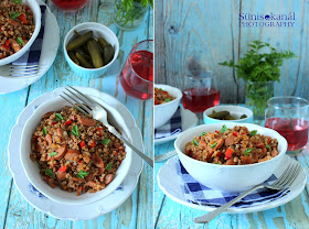 Nem fogok hazudni – a kész ételen is érezhető volt ez a bűzös aroma, sőt annyira zavaró volt, hogy mindketten úgy éreztük, mintha gabonatárolóban ülnénk. Egyetlen falat után eltoltuk magunktól a tálkát. Hiába ízesítette a többi hozzávaló, azok sem segítettek rajta. Éppen ezért úgy döntöttem, nem osztom meg a receptet, mert rossz ízű ételt semmi esetre sem tennék közkinccsé, hanem inkább elkészítem hajdinával. Szerencsére így már igazán finom lett, és a hajdina biztos sűrűn szerepelni fog kis konyhám színpadán. :D